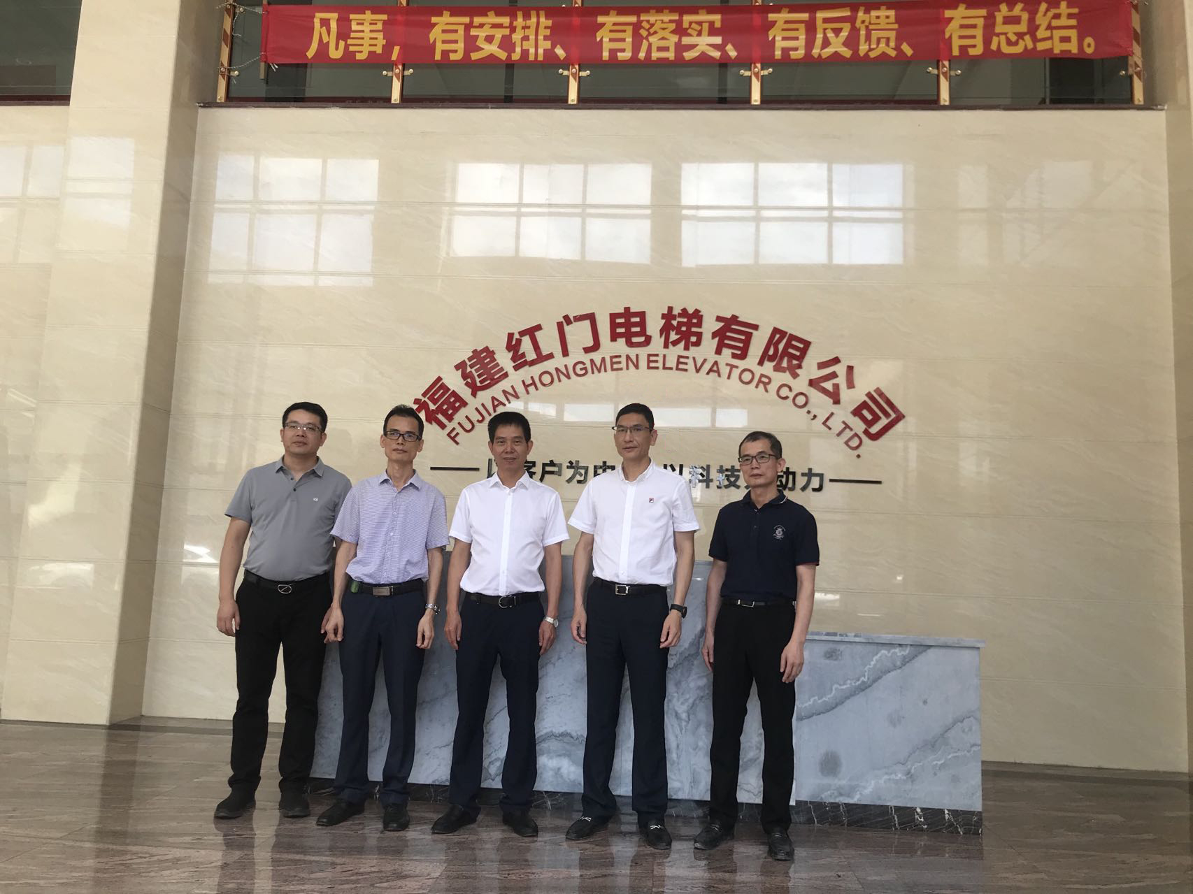 2022 年 6 月 30 日上午,晋江市委副书记吴忠刘和安海镇镇委书记陈进福带领相关部门前往168网直播澳洲幸运5开奖结果体彩考察调研工作,对车间进行了实地考察,一起体验乘坐红门的客梯和别墅梯,对电梯的平稳度给于赞扬。认真地听取了红门电梯董事尤祖集关于红门电梯的发展规划的汇报,吴忠刘副书记鼓励红门电梯加大发展的力度,为晋江的装备制造贡献力量。